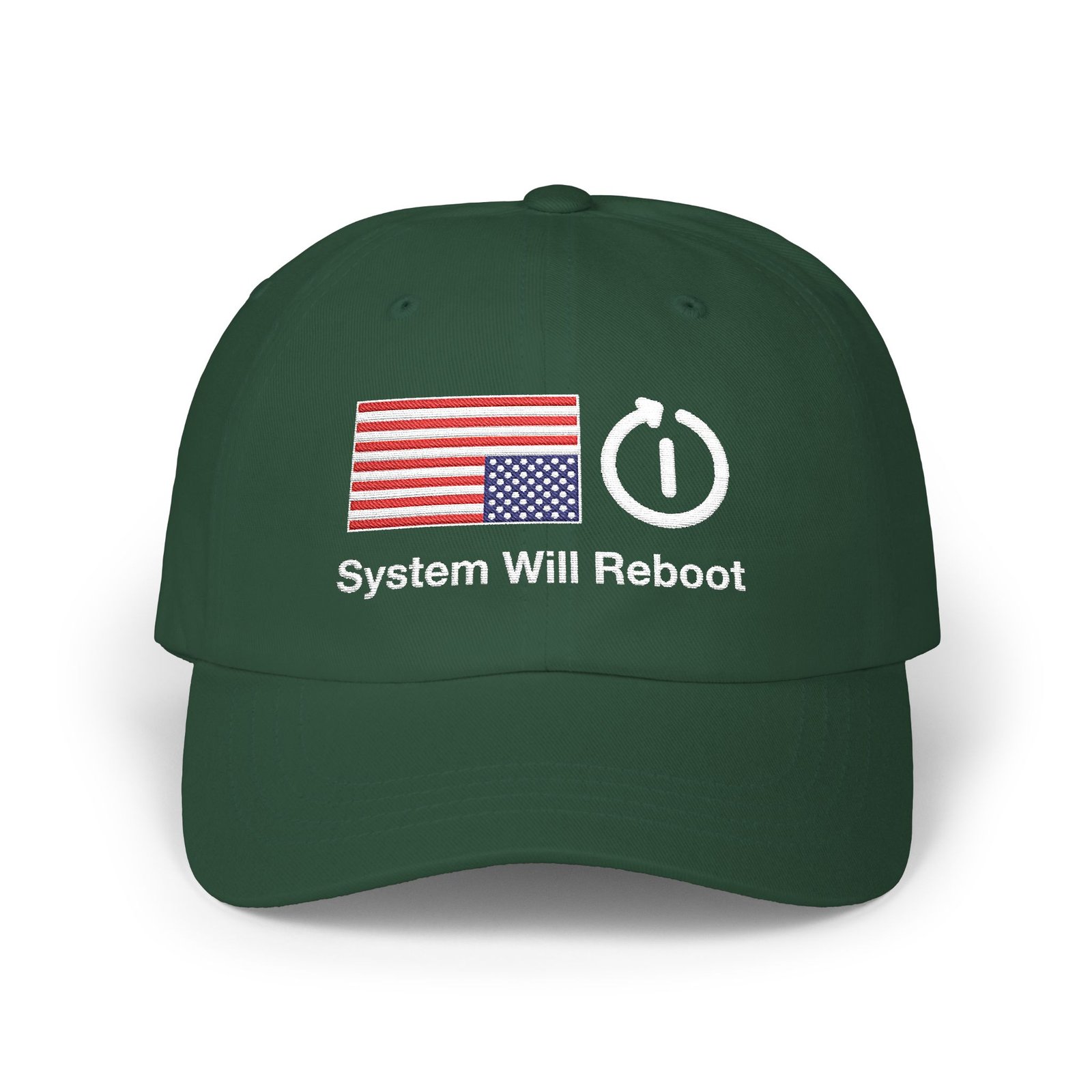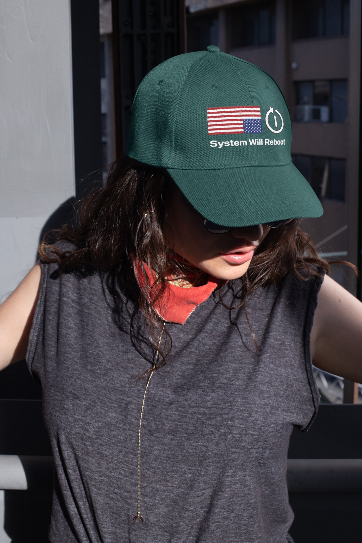 Keep your face cool with this not-so-subtle political cap that lets the world know: this system isn’t working.
